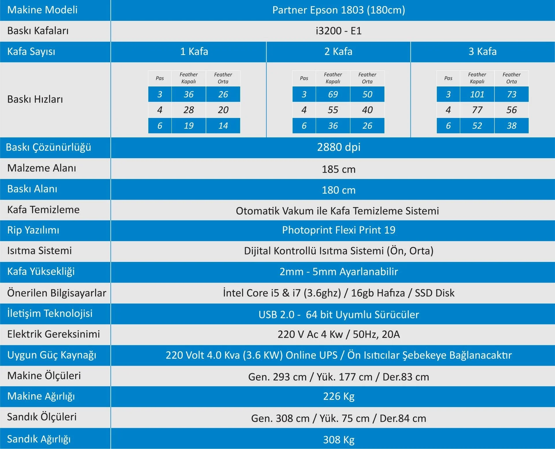 - Net 180 cm baskı genişliği